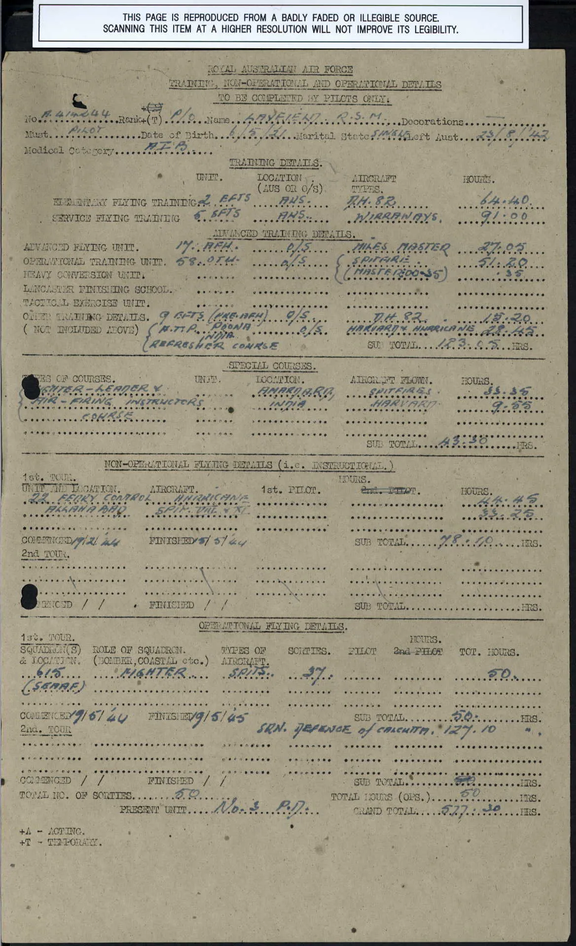 - Lost: S/L David William McCORMACK RAAF DFC & Bar (later MiD) Spitfire VIII LV742