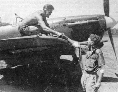 This photograph of Pilot Officer Bruce Little of 457 Sqn graced the front page of official RAAF magazine Wings dated May 11th 1943. On the previous day of this issue, this young man had a very eventful first contact with Japanese fighters attempting to raid Millingimbi Island. Flying Spitfire Vc A58-81, coded ZP-S, he received damage that obliged him to hurriedly put down on Millingimbi's east-west runway. Observing three Zeros strafing along the north-south runway, he realised his danger and immediately took off again, engaging in a fiercely twisting and turning fight with one of the enemy at extremely low altitude and scoring hits from 500 – 300 yards.